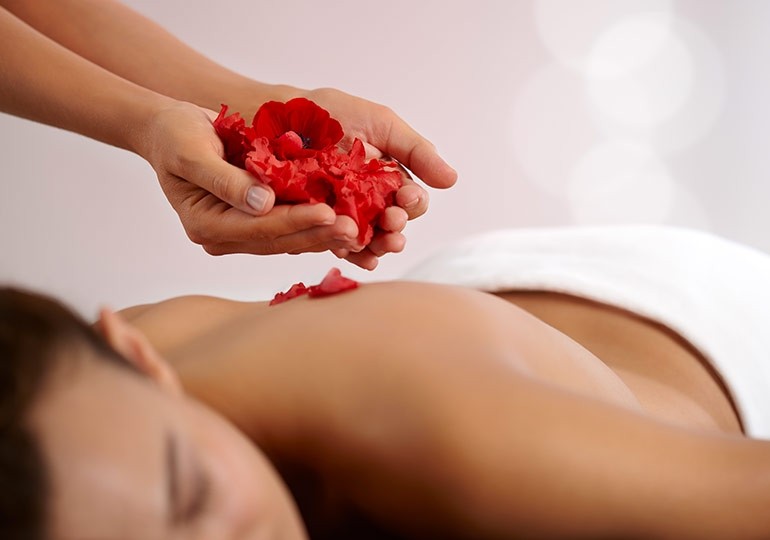 Protocole, Massage Beauté du Corps Fleur’s pour une peau parfaitement nourrie, plus douce, délicatement parfumée et une sensation d’apaisement et de bien-être incomparables.
