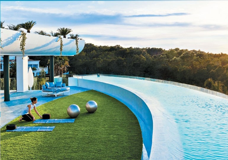 En fonction de la catégorie, ils offrent une salle de fitness, une cabine de traitement, un bain turc ou sauna, et une salle de cinéma privée. Chaque résidence comprend des jardins privés et des terrasses avec piscine à débordement faites en verre, représentant un total de 82 mètres linéaires de piscine en verre.