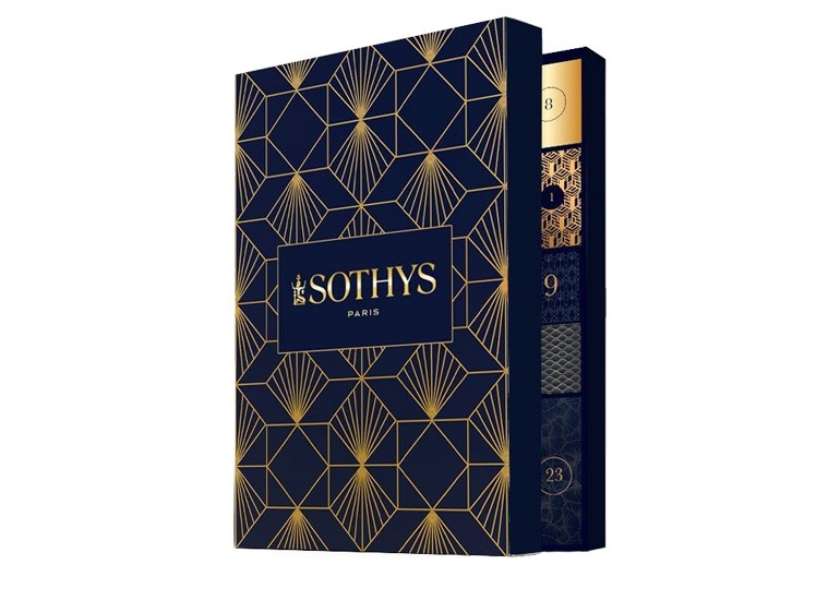 Or scintillant et bleu foncé intense parent cette année le calendrier 2019 Sothys aux motifs géométriques. Ses 24 volets dissimulent chacun un incontournable beauté à utiliser toute l’année.