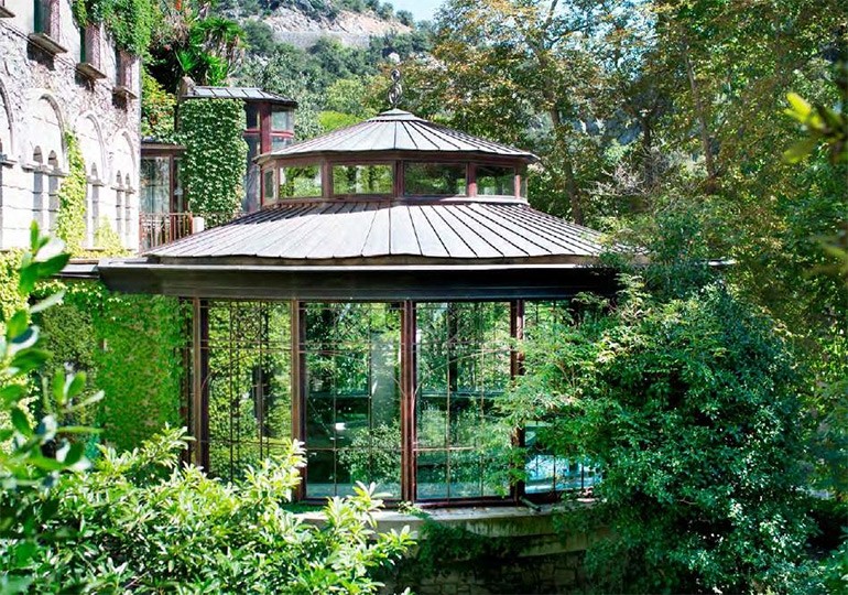 Face aux neiges éternelles du mont Canigou, dans l’un des vallons les plus sauvages des Pyrénées, le Château de Riell est perché entre pins parasols et lauriers-roses.