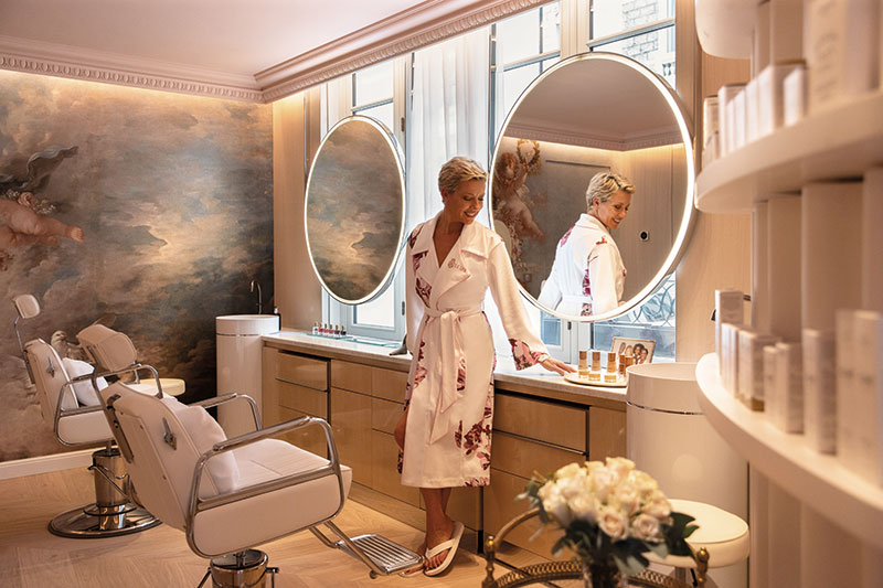 Ma visite se poursuit par deux espaces plus intimistes, dédiés aux soins courts assis, avec ou sans rendez-vous. Le Boudoir pour les dames, est une invitation à partager des moments complices entre amies, autour d’un soin visage, d’une mise en beauté ou d’un soin du cheveu. Le Barbier, exclusivement conçu pour les hommes, révèle un havre de raffinement et de détente, dont la décoration n’est pas sans rappeler celle du bar historique du Negresco et, tout comme lui, il invite à la dégustation de quelques flacons sélectionnés avec autant d’expertise que les soins et marques proposés.