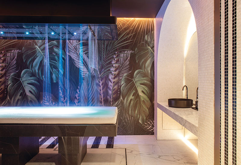 Imaginez-vous au centre de cet espace, où tout autour de vous des images évoluent du figuratif vers l’abstrait, et où tout est totalement personnalisé : couleur dominante de la salle, musique et postures spécifiques au soin-expérience choisi. « Grâce à l’IA qui redéfinit en permanence les mouvements des images, vous ne pourrez jamais avoir deux fois la même séance, même si vous choisissez de nouveau le même soin expérience », précise le Spa consultant. Un univers digital et technologique au service du bien-être pour un voyage introspectif qui éveille les sens et l’imaginaire.
