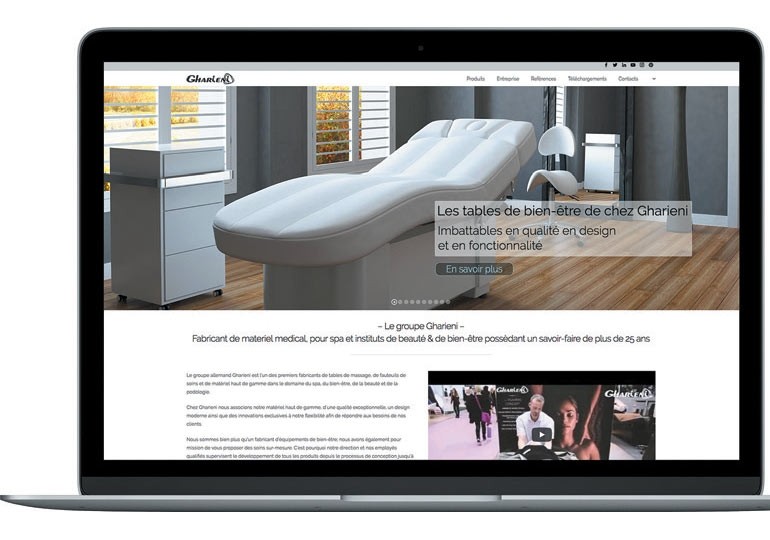 Depuis 25 ans, le groupe allemand Gharieni est l’un des premiers fabricants de tables de massage, de fauteuils de soins et de matériel haut de gamme dans le domaine du Spa, du bien-être, de la beauté et de la podologie.